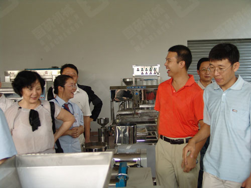 在参观塑料机械、包装机械和食品机械展厅时,代表们饶有兴趣地向陪同人员询问机械的性能、价格和市场情况。当代表们走近办制袋厂的配套机械产品吹膜机、制袋机、印刷机、破碎机、塑料造粒机和办编织袋厂的配套机械产品拉丝机、收卷机、圆织机、印刷机、覆膜机、裁袋机、缝包机时,对这种一站式的经营模式大加赞赏;在食品机械展厅得知国研牌河粉机是全国第一品牌时,好几个企业家马上表示说,国研牌河粉机的名气的确很大,他们开车天天听国研牌河粉机的广告。