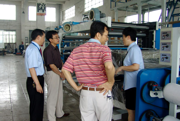 杜党勇书记一行在公司党支部书记、副总经理王声跃、副总经理陈蓓的陪同下参观了公司厂容厂貌和生产车间,在参观过程中,杜书记不时详细询问公司的生产经营情况,并仔细了解各类机器的性能特点,当来到公司深入学习实践科学发展观活动的宣传栏时,杜书记不禁驻足认真欣赏起来,连说:很好,办的不错。